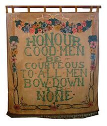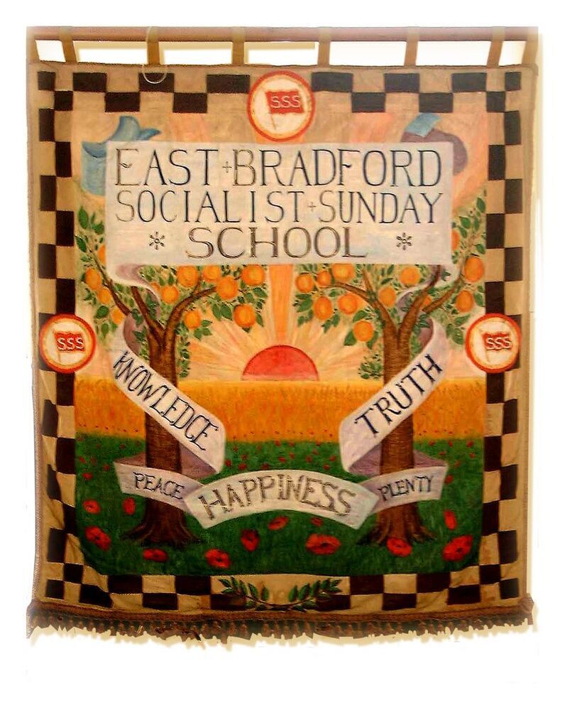 Archival historyMade by Fred Liles and unfurled on 23 August 1914 (for details of its history see Gina Bridgeland "The Story of a Socialist Sunday School Banner" in North West Labour History No 32 pp64-67). It was found in the cellar of the Textile Hall in Bradford when the Hall was closed.