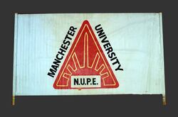 TitleNational Union of Public Employees (NUPE), Manchester University banner