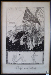 Scope and ContentPrint entitled To Life and Liberty drawn by Willy Pogany (artist). Signed by Keir Hardie. The main image is reproduced from The May Day Garland 1911 and below is an image of a man pushing a winged plough with another following on sowing seeds.