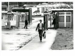 Scope and ContentBlack and white photograph of Gareth Morris, the final trade union member leaving GCHQ for the last time