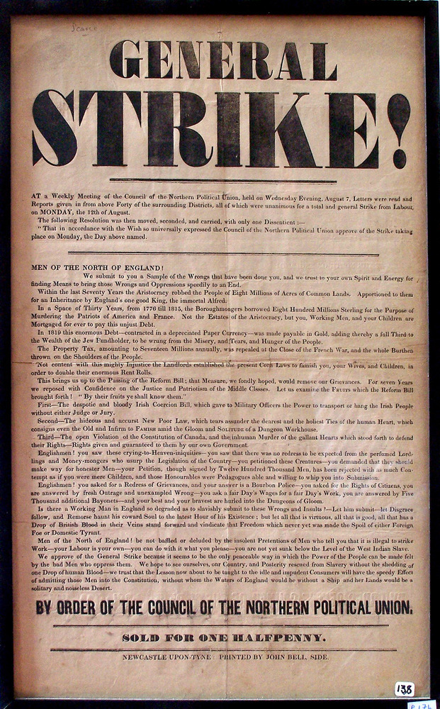 Scope and ContentNotice from the Council of the Northern Political Union headed: General Strike! and advocating a general strike on 12 August 1839