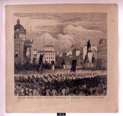 Scope and ContentTrades Union Demonstration in Manchester in support of the labourers. Cutting from The Graphic (4 Jul 1874)
