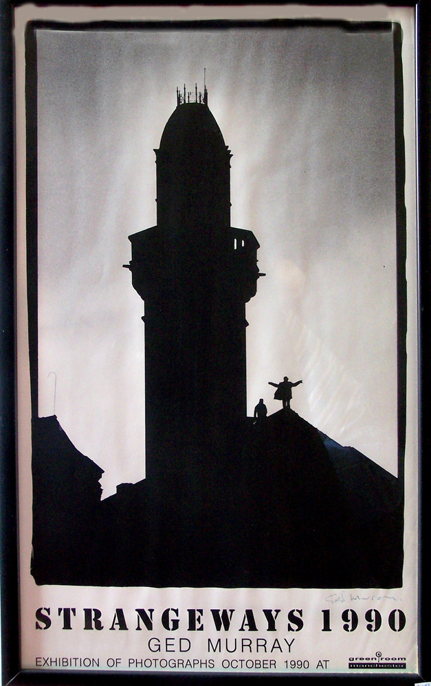 Scope and ContentBlack and white photograph of two figures on the roof of HM Prison Manchester. The caption reads: Strangeways 1990. Ged Murray. Exhibition of photographs October 1990 at Green Room