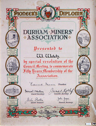 Durham Miners' Association pioneer's diploma