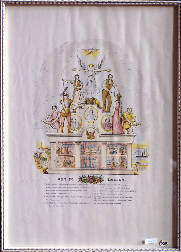 Scope and ContentKey to the images shown in the emblem of the Amalgamated Society of Engineers, Machinists, Millwrights, Smiths and Pattern Makers [see FRAMED/268, FRAMED/269, FRAMED/271]