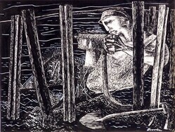 Scope and ContentLinocut image of miner working underground by Ern Brooks
