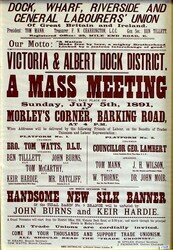 Scope and ContentReprint of a notice of a mass meeting called by the Dock, Wharf, Riverside and General Labourers' Union. Published by the National Museum of Labour History