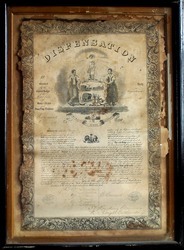 Scope and ContentDispensation (to open a branch) cased in a box 12cm deep (82 x 182 when open) (FRAMED/045 is a printer's plate) includes a list of past presidents
