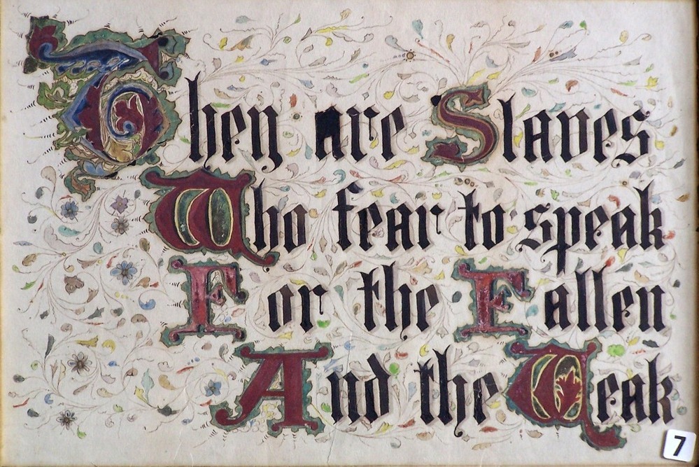 TitleThey are slaves who fear to speak for the fallen and the weak