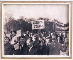 Scope and ContentBlack and white photograph of a demonstration in London against the 1971 Industrial Relations Bill, showing demonstrators holding banners and placards