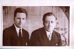 Scope and ContentBlack and white photograph of Jim Gardner and Tom Bell with the inscription: 'To John from Jim' on the back. Also in frame was a Christmas card To Bessie and Jim from Frank and Dolly