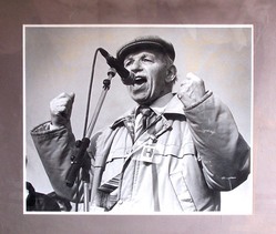 Scope and ContentBlack and white photograph of Max Druck speaking at a rally to oppose the closure of Withington Hospital, photo by Paul Herrman