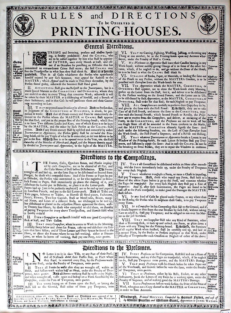 Rules and directions to be observed in printing houses