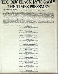 Scope and ContentModern reprint of the list of charges and sentences at the Old Bailey of 21 printers at the Times newspaper convicted of conspiracy