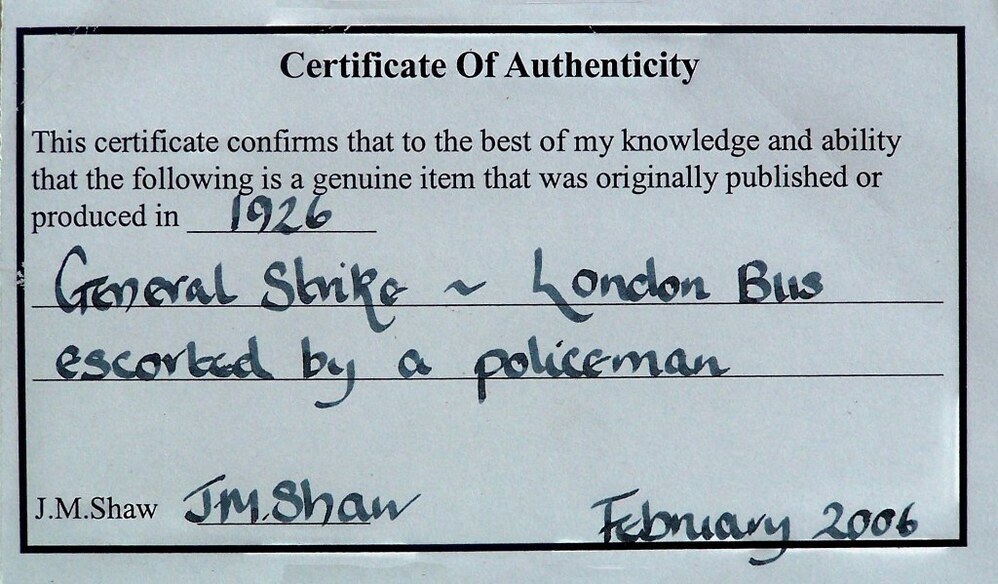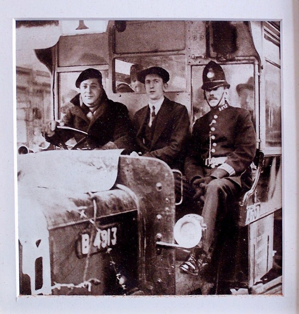 Photograph - General Strike: London bus escorted by police