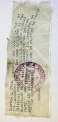 Archival historyThis silk was issued to the British comrades who travelled to Moscow in August 1930 to take part in a Special Commission appointed to discuss the British party. It was made of silk for easy concealment and disposal. The members of the British party were David Proudfoot, Scotland; RW Robson, London; Len Jefferys, South Wales; Edmund Frow, Lancashire, together with Rose Smith, Lily Webb, Harry Pollitt, William Gallacher and William Rust. They travelled from London to Leningard on a Russian boat. The Captain spoke perfect English and he held a debate with Emrys Hughes who was one of the passengers. In Moscow the Commission met Manuilsky and had a long discussion with him. The sittings of the Commission took two to three weeks, but it was not considered successful. A futher Commission sat in 1932 and produced The January Theses.