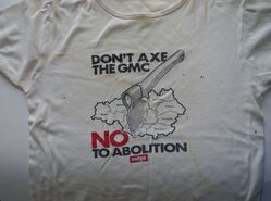 Scope and ContentWhite with map cartoon and axe "Don't axe the GMC. No to abolition"