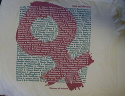 Scope and ContentCream with over 150 names on "Mna na hEireann, Dedicated to irish women everywhere. Women of Ireland"