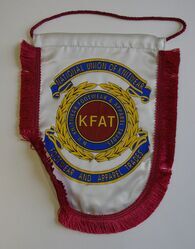 Scope and ContentGrey silk with blue, yellow and red logo. "KFAT. National Union of Knitwaer, Footwear and Apparel Trades"