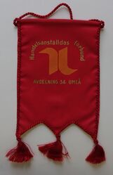 Scope and ContentRed satin with orange stripe symbol and lettering "Handelsanstalldas forbund. Avdelning 34 UMEA"
