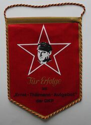 Scope and ContentRed satin with portrait and lettering "Fur erfolge im Ernst Thalmann-aufgebot der DKP"