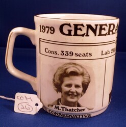 Scope and Content1979 General Election mug. Wrap around illustration depicting Conservative, Labout and Liberal leaders with results of the election. Text - '1979 General Election 3rd May'.