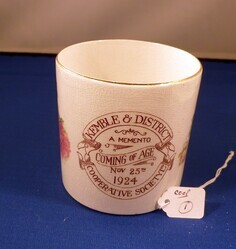 TitleKemble and District Co-operative Society: 21st anniversary mug, 1924