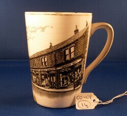 Scope and ContentSkelmanthorpe Industrial Co-operative Society Limited, Centenary 1834-1934 mug. Front: Illustration of premises. Back: Text - In commemoration of the centenary of Skelmanthorpe Industrial Co-operative Society Ltd 1834-1934. They helped everyone his brother
