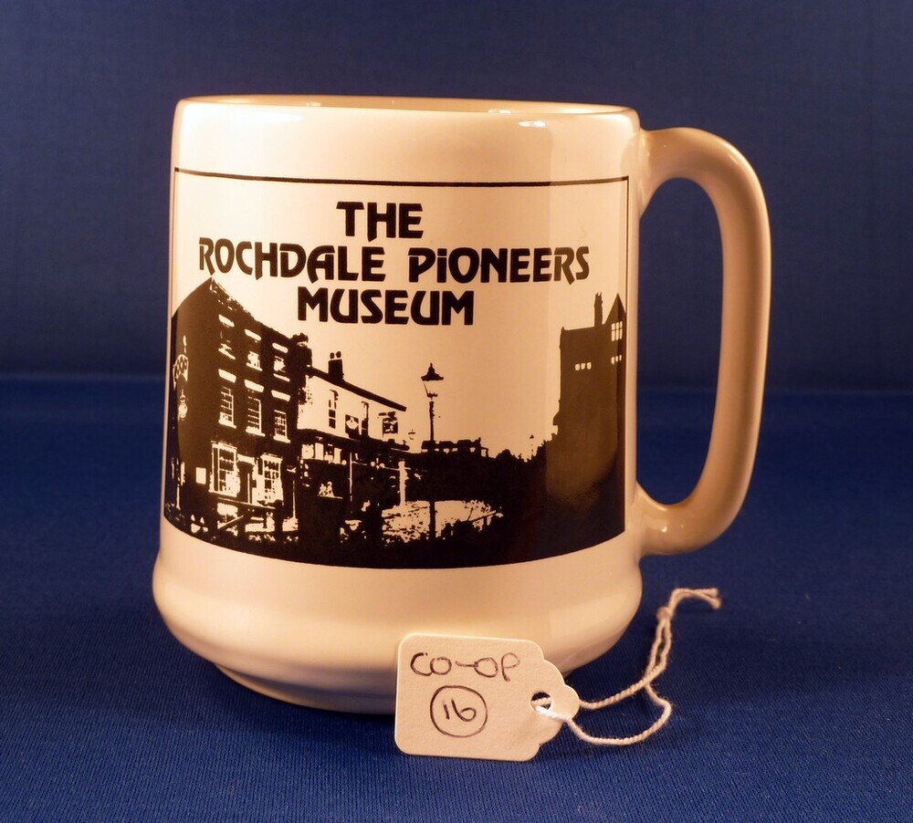 Scope and ContentThe Rochdale Pioneers Museum mug. Front: Square Illustration of Museum Buildings. Text - 'The Rochdale Pioneers Museum'. Back: Square Illustration of men around a table.