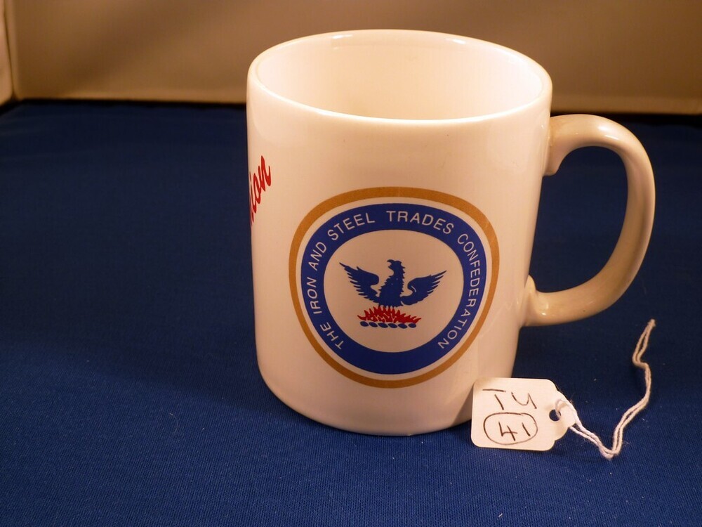 Scope and ContentIron and Steel Trades Confederation mug. Front: Black circular badge with a Phoenix rising from fire with text - 'The Iron and Steel Trades Confederation'. Side: text in red - 'The Union'.