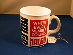 Scope and ContentNational Association of Local Government Officers (NALGO), Where Every Member Counts mug. Front and back: Red and black block with white text - "Where Every Member Counts". Text in red and black: "NALGO".