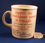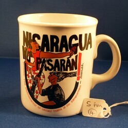 Scope and ContentNicaragua. No Pasaran! mug. Front: Illustration of 2 women, a baby and a gun. Text - "Nicaragua. No Pasaran! Without the participation of women there is no revolution. AMNLAE". Back: Text - "Support the Nicaraguan women in struggle. AMNLAE - Nicaraguan Women's Organisation. Nicaragua must survive! Help Nicaragua. Drink Nicaraguan coffee