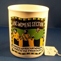Scope and ContentAfrican National Congress Womens Section mug. Side: 3 Women in front of South Africa flag. Text - "ANC Womens Section. South African women march to freedom".