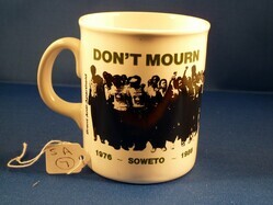 Scope and ContentBrent Anti Apartheid mug. Wrap around illustration of South Africa Demonstrators. Text - "Don't mourn Mobilise. 1976 - Soweto - 1986 10th Anniversary of students rebellion". Side: Text - "Brent Anti Apartheid".