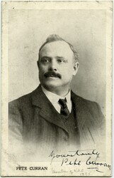 Scope and ContentPhotograph of Pete Curran. Head and shoulders portrait vignette, facing camera with autograph