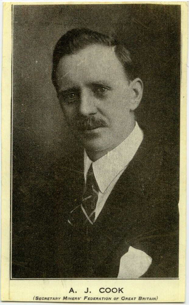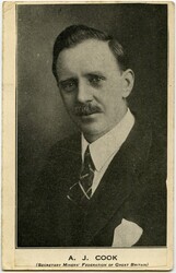 Scope and ContentPostcard of AJ Cook, secretary of the Miners Federation of Great Britain. Head and shoulders portrait.
