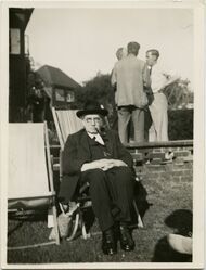 Scope and ContentPhotograph of FW Jowett, sat on a deckchair with a pipe and wearing a hat.