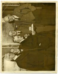 Scope and ContentPhotograph of William "Willie" Stewart being presented a gift on his 88th birthday. Group of men (left to right): George Scott, Charles Scott, William Stewart, James Taylor and Hugh Robertson.