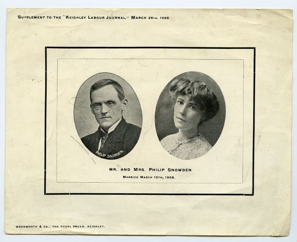 Scope and ContentSupplement to the Keighley Labour Journal, 25 Mar 1905. Photograph of Mr and Mrs Snowden married 13 Mar 1905.