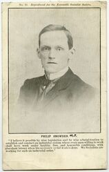 Scope and ContentPostcard of Philip Snowden. Head and shoulder portrait. Quotation of Philip Snowden underneath. Newcastle Socialist Society No. 10