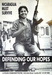 Scope and ContentPoster showing a young woman holding a gun with the text: Nicaragua must survive - defending our hopes. a young Communist poster.
