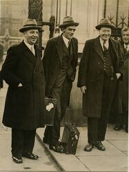 Scope and ContentPhotograph of James Maxton with two MPs 18-10-1932. Text on reverse - 'Reassembly of Parliament - (on Tuesday Octorber 18th). At a very early hour of the morning members were arriving at the house and reserving their seats. J. McGovern (Shettleston), James Maxton (Bridgeton) and G. Buchanan (Gorballs) Scottish Labour Members leaving.