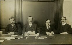 Scope and ContentPhotograph of Ramsay MacDonald and a group of 3 men seated at a desk. Left to right - MacDonald; Henderson; Roberts; Duncan.