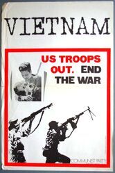 Scope and ContentPoster with images of a woman with a gun and a child and two soldiers pointing guns and the text: Vietnam, US troops out. End the war'. Produced by the Communist Party.