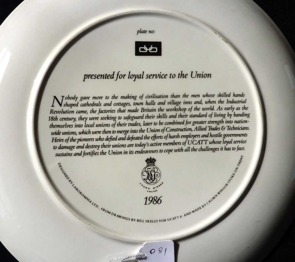 Plate - Union of Construction and Allied Trades (UCATT), London Regional Council: for loyal service, 1986