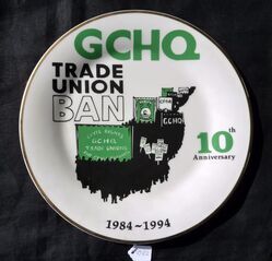 Plate - GCHQ Trade Unions: trade union ban 10th anniversary, 1994