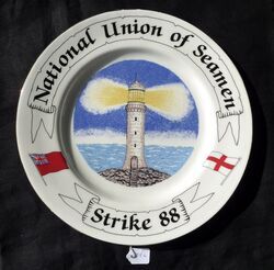 Scope and ContentPlate to commemorate the National Union of Seamen (NUS) strike 1988, with an image of a lighthouse in the centre