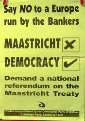 Scope and ContentPoster with the text: Say NO to a Europe run by the bankers. Demand a national referendum on the treaty. Produced by the Communist Party of Britain.