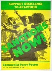 Scope and ContentPoster with an image of anti-apartheid protesters and the text: Support resistance to apartheid, sanctions now!' a Communist Party poster.