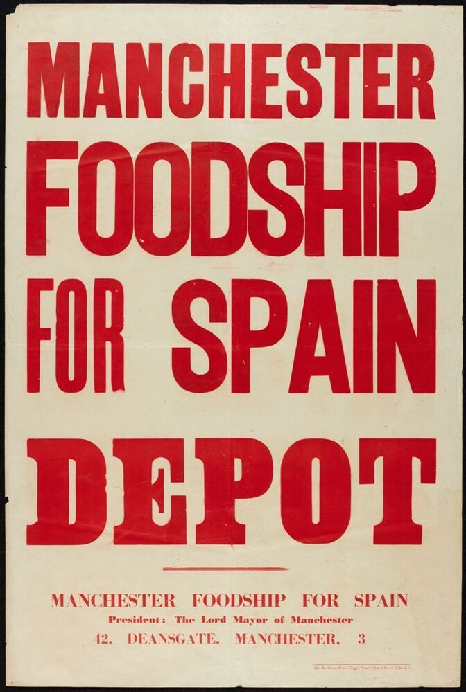 Scope and ContentPoster with the text: Manchester foodship for Spain depot. Produced by Manchester Foodship for Spain, 12 Deansgate, Manchester